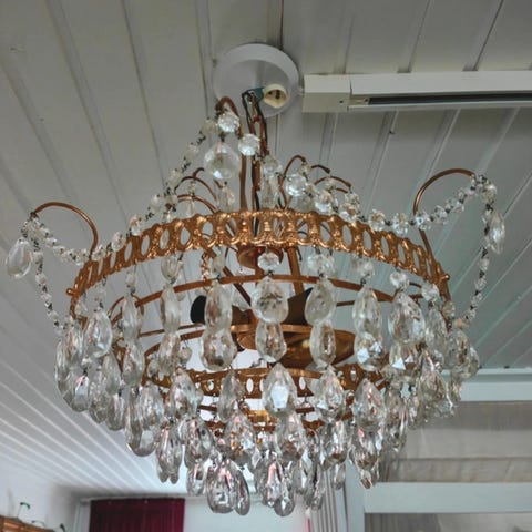 Kuvien vanha Livalin valmistama kristallikattokruunu