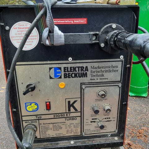 Esabin vanhan liiton toimintavarma voimavirtakone.Harvinaisen hyvin säilynyt.Tuntuu hitsaavan aivan hyvin.3m:n poltinkaapeli,paikallaan 0,6 mm:n lisäainelanka.Kone soveltuu parhaiten 0,6 la 0,8 langalle.Peltihommiin ja muille kevyemmille teräsrakenteille.Kokeileminen onnistuu.