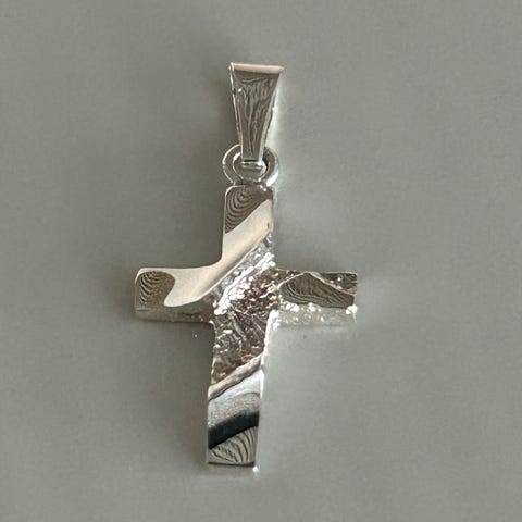 Myydään käyttämätön, uusi, paketissaan oleva hopeinen rippiristi. Sopii sekä tytölle että pojalle.