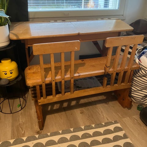 Myydään todella hyväkuntoinen pulpetti ja tuoli. Korkeutta pystyy säätämään.