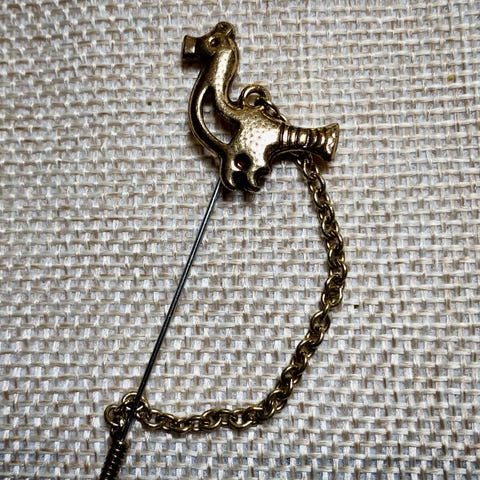 Myydään käyttämätön pieni Lintunen-rintaneula pronssia.