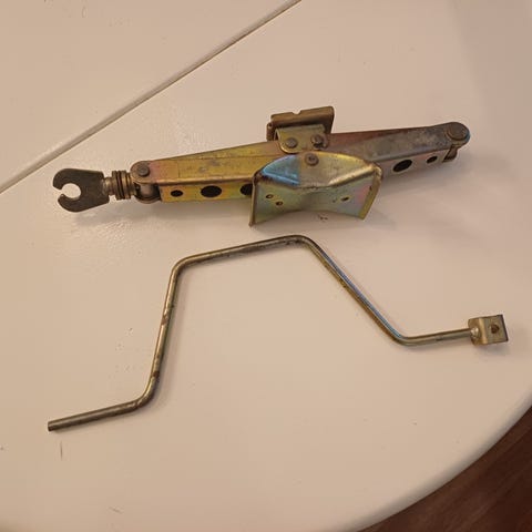 Yhdet renkaat vaihdettu saksitunkki.
