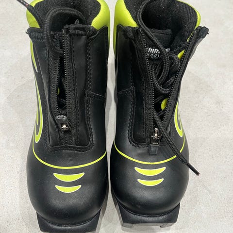Fisher lasten hiihtomono musta ja keltainen väri. Sisäpohjanmitta 21cm.
