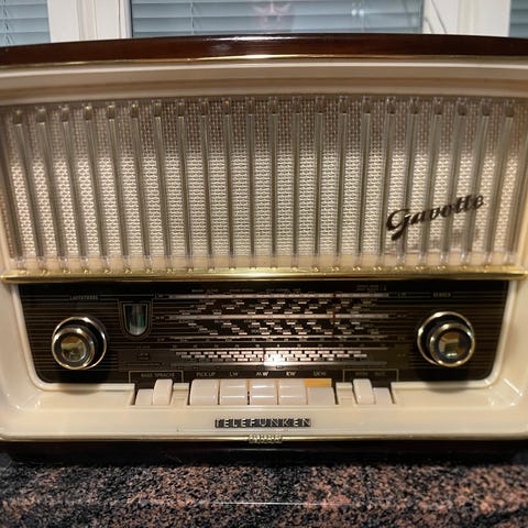 Telefunken Operette 6 -putkiradio, joka on valmistettu Saksassa 1950-luvulla. Syttyy valot kun laittaa töpselin, radiota en saanut kuulumaan. Kuvan mukaisessa korjattavissa kunnossa. Vain nouto Vantaalta Ilolasta.