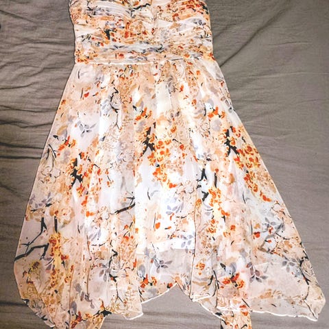 Vila Kesämekko naisten, koko M. Mekko on valmistettu puuvillasta, elastaanista ja polyesteristä ja siinä on kirjava väritys. Selässä vetoketju, hyvässä kunnossa.