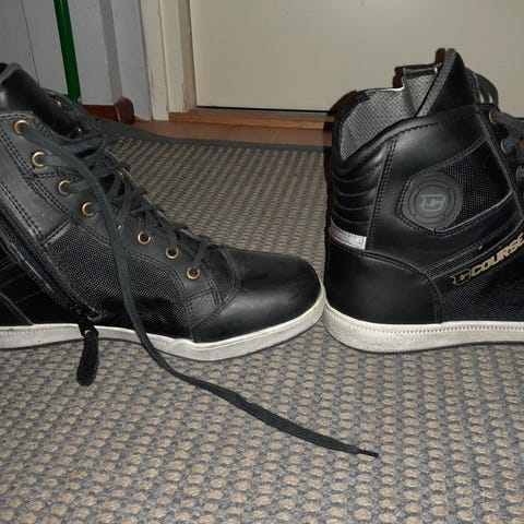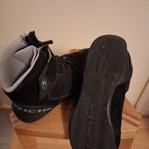 Lähes käyttämättömät. Olleet matkustajan jalassa noin viikon ajan moottoripyöräreissulla. Näillä ei ole vaihdettu edes vaihteita.