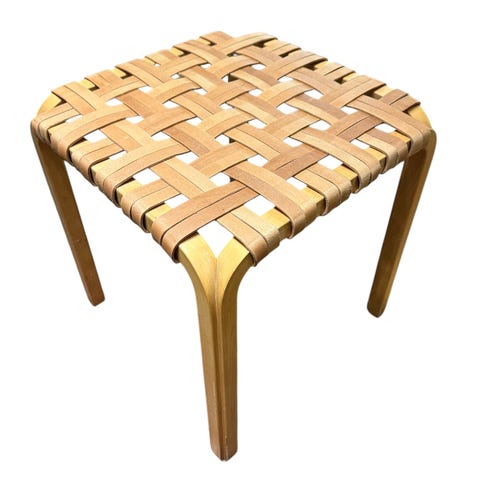 Artek Alvar Aalto jakkara, valmistettu koivusta. Klassinen design, joka sopii monenlaiseen sisustukseen. Muuten priimakuntoinen, mutta kuvassa näkyvä naarmu istuinpinnassa.