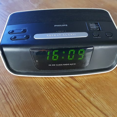 Digitaalinen herätyskello radio, jossa on digitaalinen näyttö ja herätysradio-ominaisuus. Laite toimii sähköllä ja sisältää kaiuttimen. Väri musta.