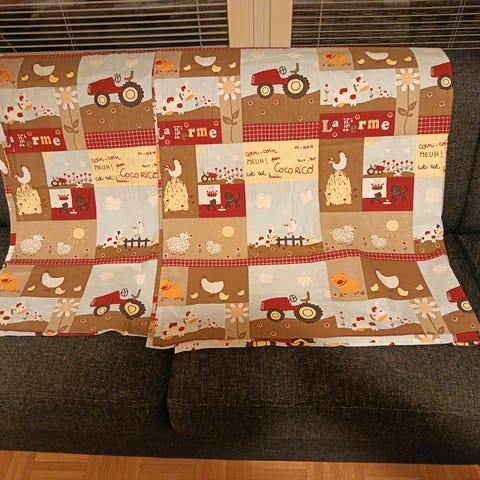 2 kpl lastenhuoneen verhoja + yhteensopiva sisustustyynyn päällinen. Laadukkaat ja hyväkuntoiset. Hankittu Kodin Ykkösestä. Verhon alakulmissa painot.