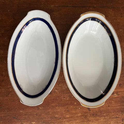 Arabian vanhat tarjoilukulhot 2 kpl, piippuleima (1932-49). Koko 17x17 cm. Ehyet mutta on käytön jälkiä ja kulumaa sekä kullanväriset reunat haalistuneet. Myydään vain yhdessä. Vain nouto, maksu käteinen tai Mobilepay.