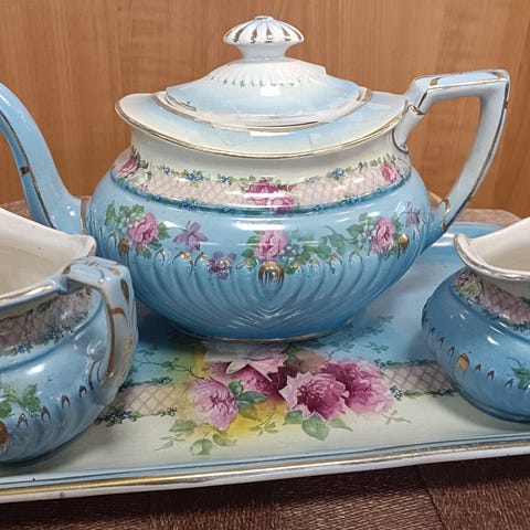 Antiikki Rookwood posliini 3-osainen setti Yhdysvallat