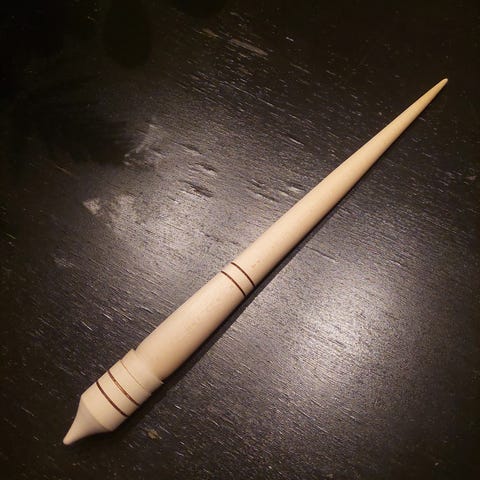 Georgialaisra käsityötä, tuettu värttinä kupilla. Kevyt ja nopeakierteinen. Värttinän pituus 28cm, paino 27g, Kuppi paino 31g, läpimitta 6cm.
