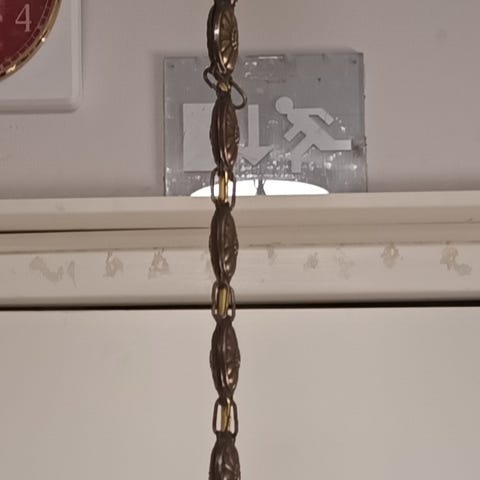 Vanha antiikinen hissilamppu. Posliini vastapainolla, välirissalla ja kytkinrasialla.