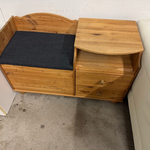 Penkki jossa istuinosan alla säilytystilaa. Penkki, Laatikko, Säilytystilaa