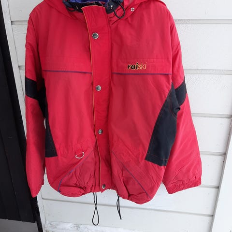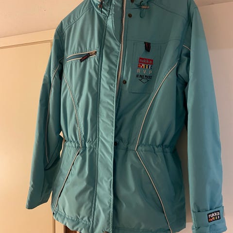 Ikäisekseen erittäin hyvässä kunnossa. Joissakin kohdissa pientä ajan patinaa mutta täysin ehjä, vetoketjut toimii ja kuminauhat joustaa hyvin. Lahkeissa lumilukot ja takissa on paljon taskuja. Takissa kokomerkintä 54 ja housuissa 52.