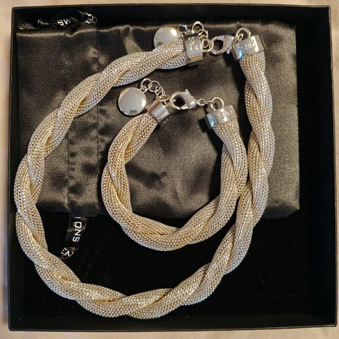 Snö of Sweden punottu hopeinen kaulakoru ja rannekoru rasiassa
