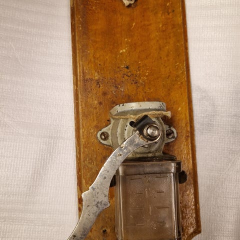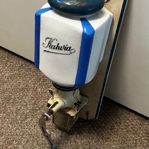 Tästä komea kahvimylly vaikkapa koristeeksi, hurjimmat jauhavat tällä jopa pavut aamuisin. Puhdistin tämän aikanaan kun ostin, muttei ikinä päätynyt käyttöön. Kooltaan aika iso, purua mahtuu lootaan kivasti. Mittoja ei ole nyt antaa, tosiostajalle käyn mittaamassa.
