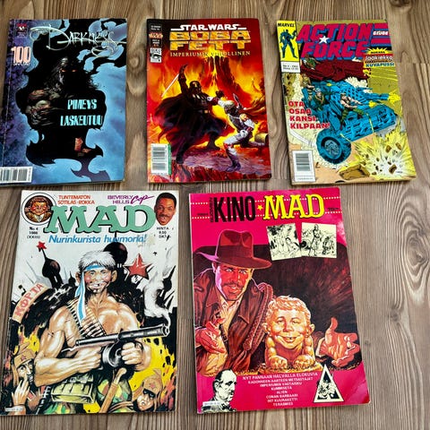 Vanhoja sarjakuvia. Paljon luettu mutta ehjiä. Kaikki 7kpl 10€ tai 2€kpl