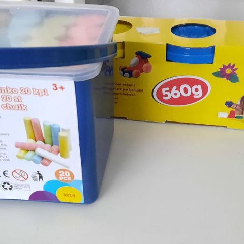 IKEA MÅLA muovailuvahasetti, sisältää kuusi muovailuvahapurkkia. Soveltuu lasten luovaan leikkiin ja motoristen taitojen harjoitteluun.