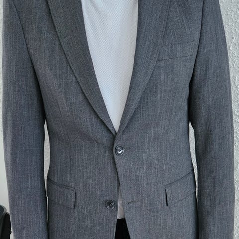 Myydään sininen tyylikäs Dressmanin pikkutakki, koko 50 slim fit. Takki on uudenveroinen.