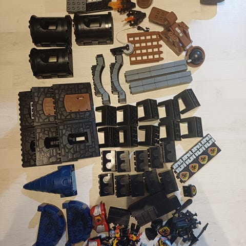 Paljon leikitty, mutta ehjä ritarilinna. Kulumaa ja naarmuja löytyy.