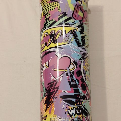 Musta uusi tumbler. Pillissä muovi paikoillaan.