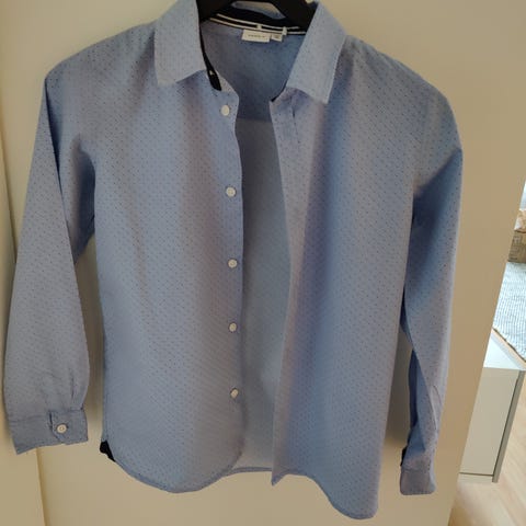 Vaaleansininen kauluspaita pienillä sinisillä ja punaisilla pilkuilla. Name it 158-164