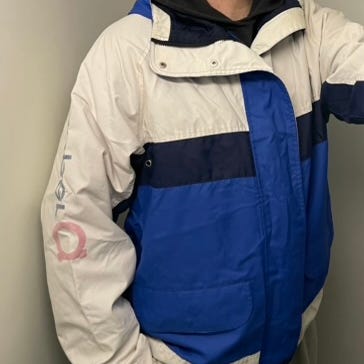 Retro setti. Ihanat värit. Kamera hiukan vääristää punaista väriä ens. Kuvissa .Hyväkuntoinen setti. Kaikki ehjää ja siistiä. Kangas mukavan pehmeän tuntuista, säämiskän tuntua. Niskassa fleecekangas. Voi käyttää vaikka rinteessä, ulkoilu, hiihto.. tilava koko