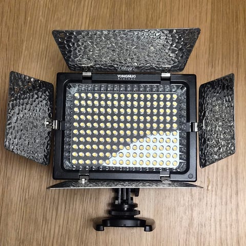 Ladattavat kuvausvalot irrotettavalla akulla. Säädettävä kirkkaus ja värilämpötila. Mukaan laturi ja diffuusoreja.