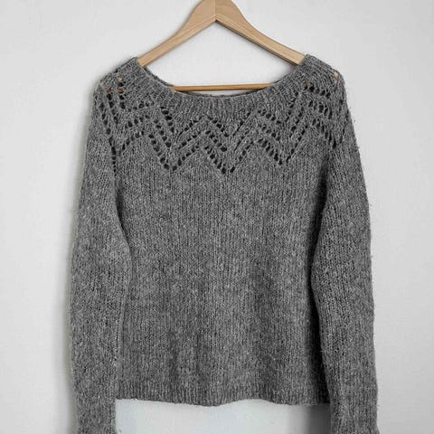 Käsin tehty villapaita neulepaita koko M, mitta kainalosta kainaloon 50, olka helma 60, kainalo hihansuu 43, joustava, hyvä kunto, villasekoitusta.