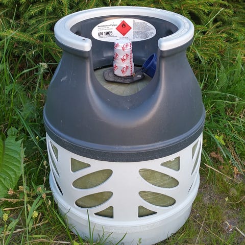 Myydään kuvan täysinäinen 10kg komposiitti painoventtili nestekaasupullo.