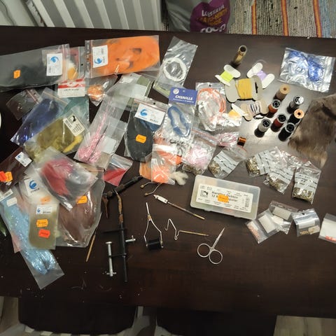 Hakusessa edulliset jonkunlaiset perhonsidonta työkalut, penkki ja materiaaliaki voi tarjota.