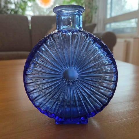 Hieno punertava (ei niin tumma kun lila pullo) aurinkopullo värikkäältä 70 luvulta.Riihimäen lasi. Helena Tynell. Voin lähettää hyvin pakattuna tsi nouto. Hinta 2000.