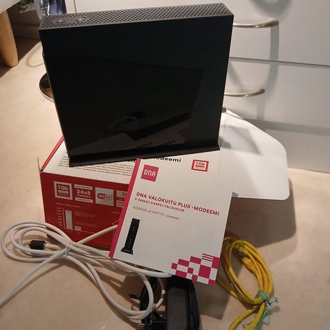 DNA valokuitu Plus-modeemi F-3890v3 kaapelitalouksiin.
