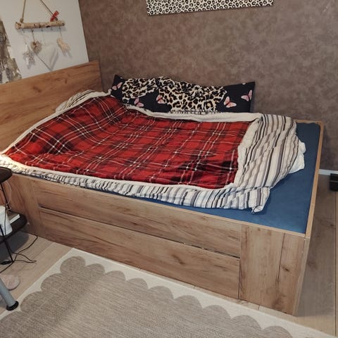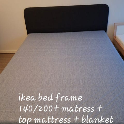 Ikean Slattum sängynrunko, 140x200cm, sekä ikean puolikova vaahtomuovipatja ja jyskin dreamzone sijauspatja. Kaikki vielä oikein hyvässä kunnossa, toki käytössä olleet noin 6 vuotta. Kissatalous.