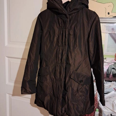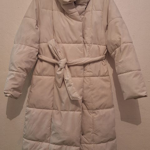 Pari kertaa päällä ollut paksu painava toppatakki.