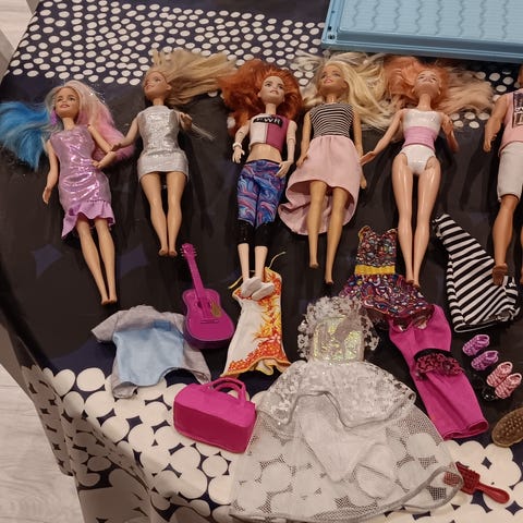 Myydään barbeja/nukkeja paketti hintaan. Osa toimii pattereilla mutta niistä vaihdettava patterit.