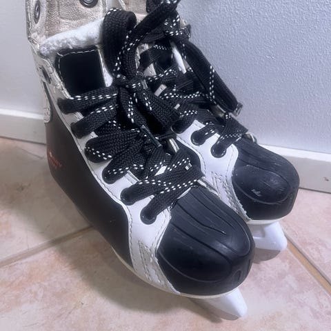 Calgary lastena hokkarit koko 31. Mustat värit ja perinteinen nauhakiinnitys. Soveltuvat jääkiekkoiluun. Kulumaa pinnassa, mutta ehjät.