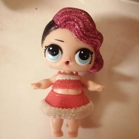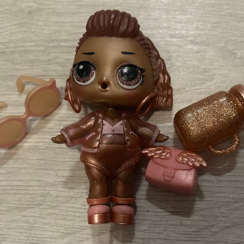 L.O.L. Surprise Lights Glitter Surreal BB, mukana pinkki juomapullo ja kukkakoristeinen hiuspanta. Nukella on värikäs asu ja korvakorut. Hp. 8.00 euroa/tarjous.