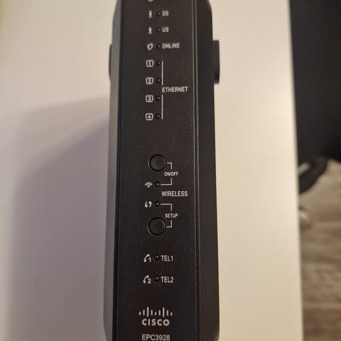 Kaapelimodeemi joka jäänyt turhaksi. Mukana tulee virtapiuha.