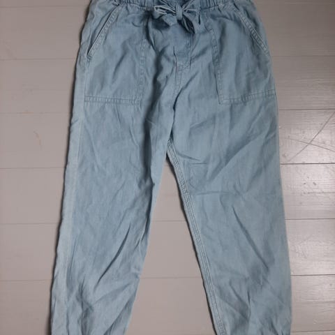 Myydään KappAlh Demin farkut, joissa on keskikorkea vyötärö. Painonappi ja säädettävä joustonauha vyötäröllä. Ei vetoketjullista sepalusta. Koko 104, mutta ainakin meillä reilu koko ja käytössä koossa 110.