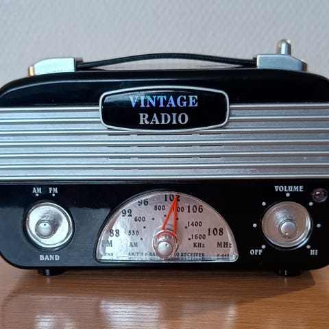 Vintage FM-radio Brittilästä. Soi hienosti. Toimii verkkovirralla ja paristoilla/akuilla. Phone lisäliitäntä. Voin lähettää, jolloin lisätään pakkaus- ja postituskulut, ei ToriDiiliä!