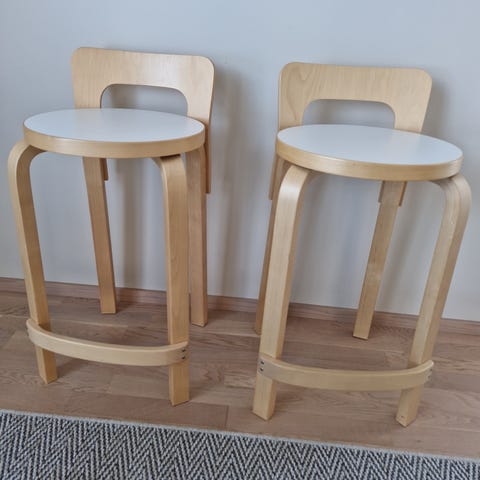 2kpl Artek K65 työtuoli / baarijakkara, koivu + musta linoleumi