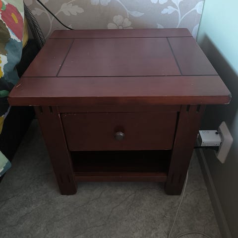 Siistit laatikolla ja välitasolla olevat yöpöydät. Molemmat yht. 35e