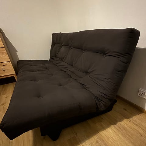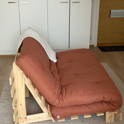 Karup Designin 160 cm leveä vuodesohva. Ollut muutaman vuoden vierashuoneessa, hyvä kunto. Ostettu aikaisintaan vuonna 2022, mutta ei tarkkaa muistikuvaa tästä. Joitakin pieniä tahroja löytyy patjasta, joita en ole yrittänyt puhdistaa. Koiratalous!