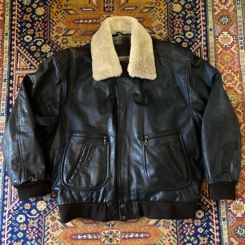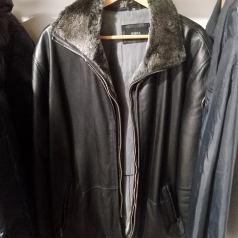 Hieno lämmin kaksoisvetoketjulla pitkä nahkatakki.