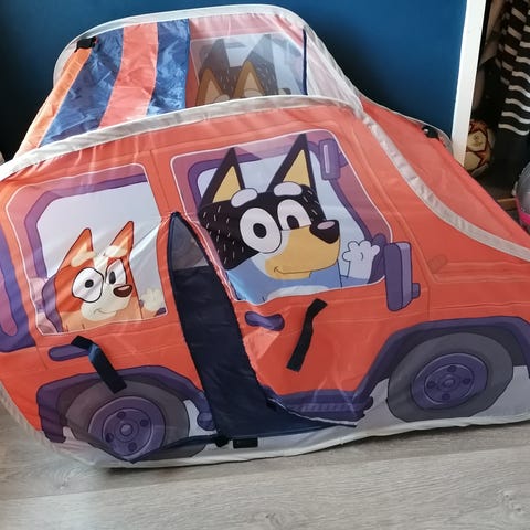 Myydään Bluey / Tuuri minikoti sekä siihen kuuluvat huonekalut (ruokapöytä, tuolit, sänky ja wc-pönttö) ja Tuuri -hahmo.