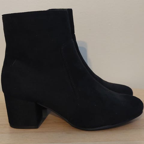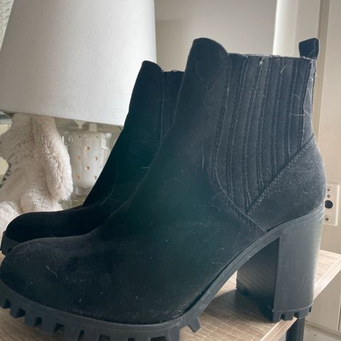 Dinsko korolliset nilkkurit, koko 37, hyväkuntoiset ja mustalla lankilla saa pinnan virheet piiloon :) musta väri. Kengät ovat nilkkamalliset ja niissä on vetoketju sivussa. Materiaalitiedot eivät ole saatavilla.