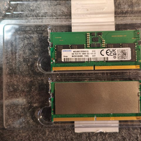 Täysin toimivat Samsung DDR4 RAM-muistit, kaksi moduulia, kummassakin 8 GB kapasiteetti, yhteensä 16 GB. Muistien nopeus 2400 MHz (PC4-19200). Kuvissa tarkemmat tiedot.