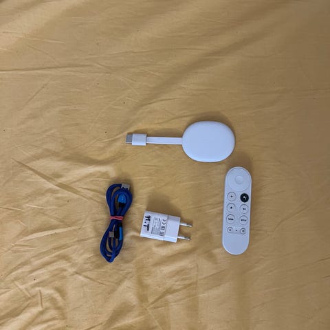 Hyväkuntoinen Googlen mediatoistin, joka toistaa 4K-laatuista kuvaa. Itse tikun kunto on virheetön, kaukosäätimessä on pinnassa hentoja naarmuja, jotka näkyvät, kun valo taittaa sopivasti (ks. kuvat).
